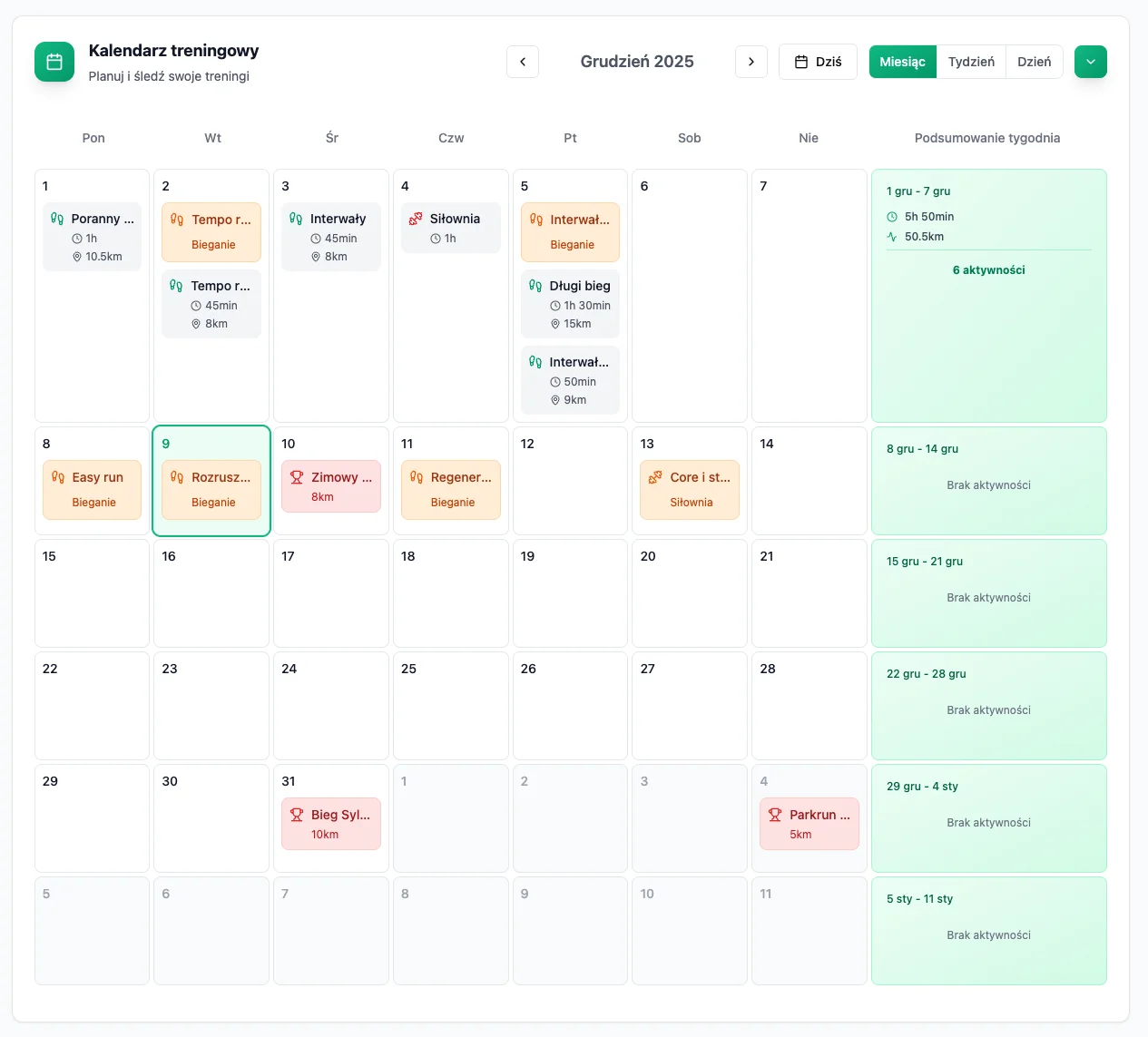 Koniec z chaosem i zgubionym notatkami. Jeden przejrzysty kalendarz, gdzie w kilka klikni臋膰 zaplanujesz ca艂y tydzie艅 trening贸w.